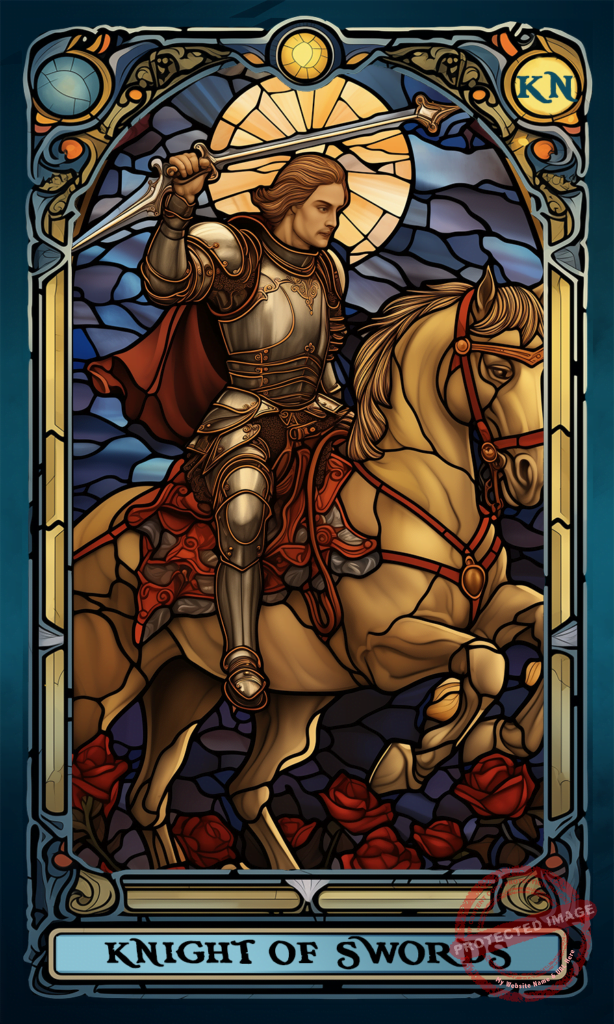В любовта, Рицар Мечове носи енергията на бързи и решителни промени. Ако сте обвързани, може да почувствате нуждата да обсъдите важни теми с партньора си и да вземете решения, които да определят бъдещето на връзката ви. Внимавайте обаче да не сте прекалено настоятелни или рязки в думите си – комуникацията трябва да бъде честна, но също така внимателна. За необвързаните, тази карта подсказва, че може да срещнете нов човек внезапно и да бъдете завладени от силни чувства. Действайте уверено, но не бързайте прекалено с развитието на отношенията.